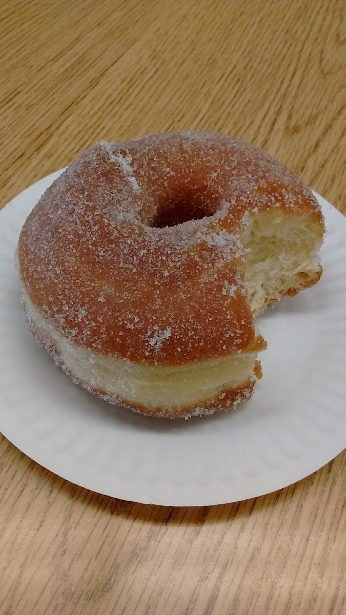 **The pic is just half a sandwich. :) This place was amazing today 5/29/25, it has been many, many years since I've had their donuts and never tried anything else until today. The Chicken Salad sandwich was delicious!!! The bread was phenomenal. So fresh and very soft like biting into a cloud. It was fully loaded too. The gentleman serving was very kind and proud of his food. The lady at the counter was sweet and friendly. So inviting and lots of smiles. Good energy! The Apple Fritter heated up was perfection...Perfect amount of moist and crunch. The inside is darling and you can even get a window seat to look outside on Main Street and people watch. I will definitely be coming back here ever cpl wks to try other items from their menu and bakery. What a gem.